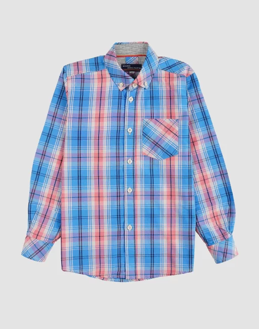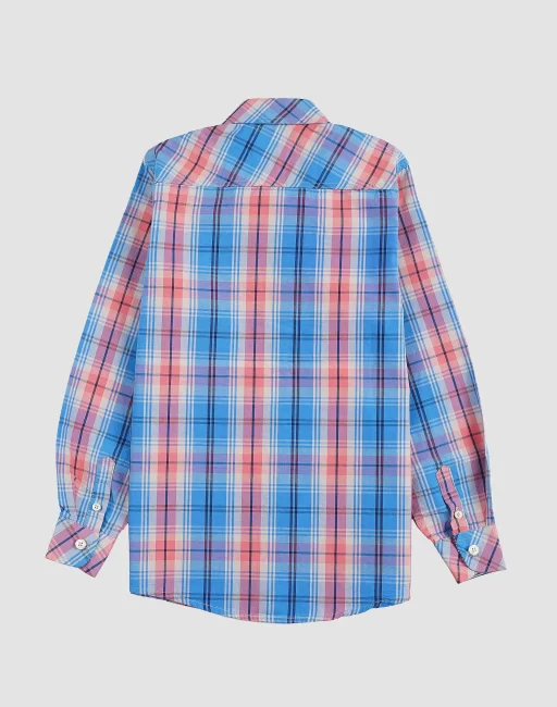 پیراهن شومیزه پسرانه طرح چهارخانه آبی کمرنگ-قرمز