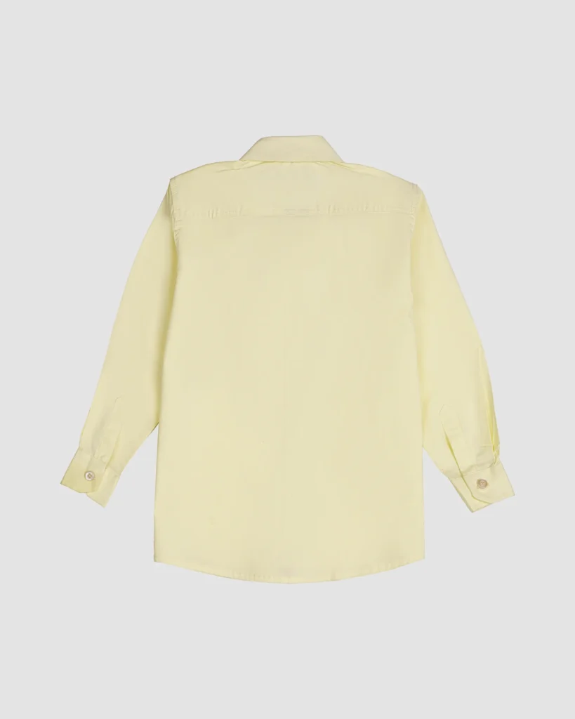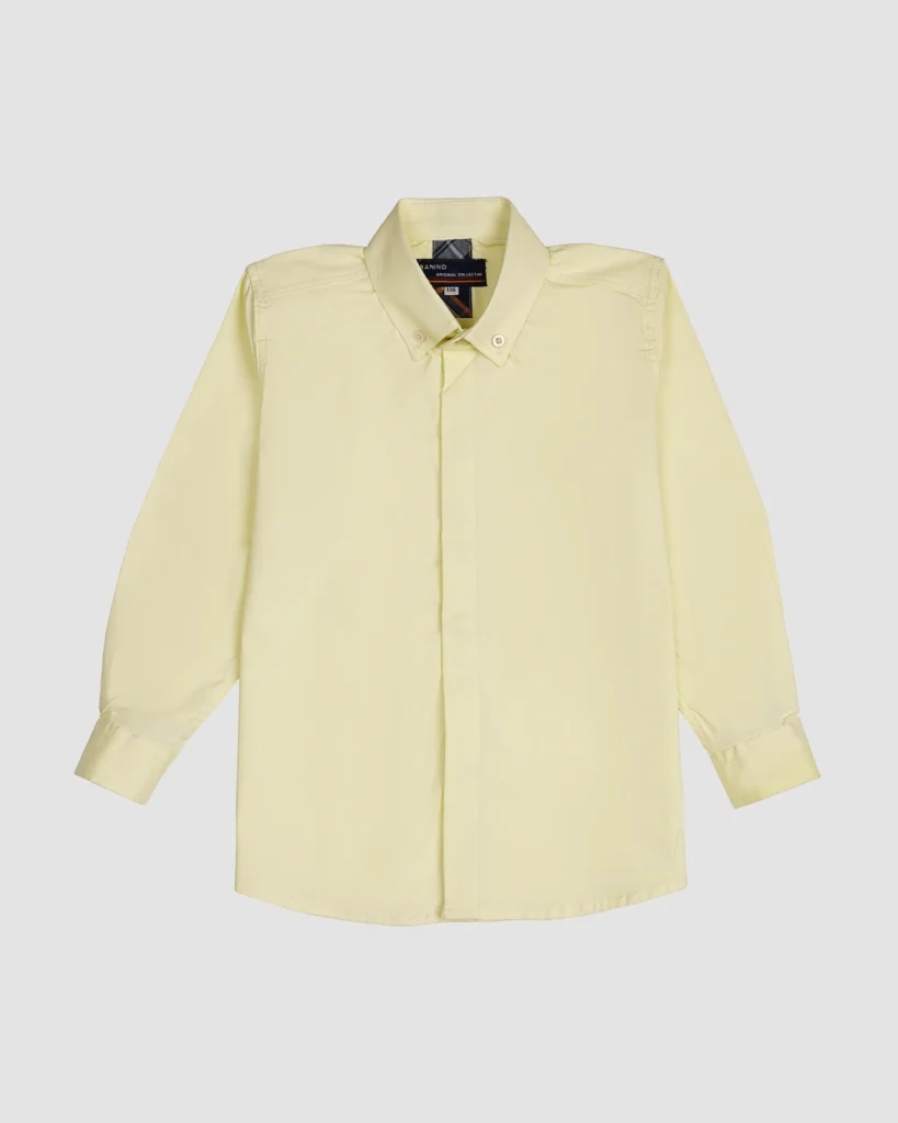 پیراهن پسرانه پوپلین دکمه مخفی رنگ لیمویی