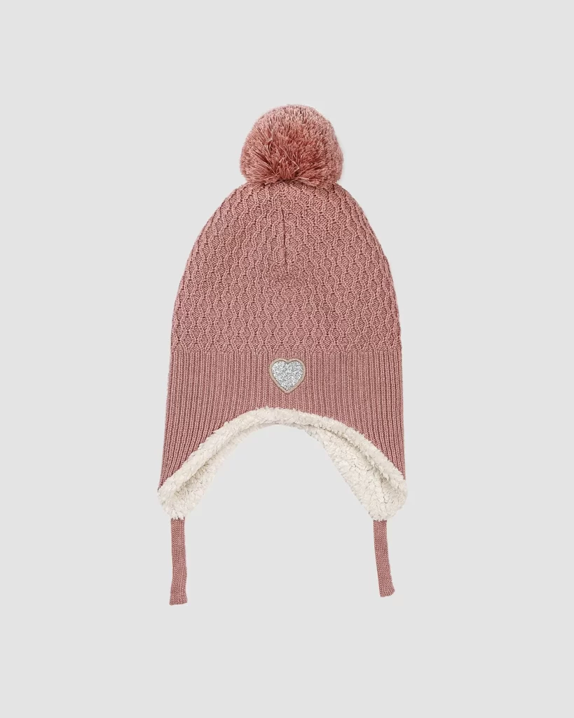 کلاه زمستانه دخترانه گوش دار طرح قلبی گلبهی