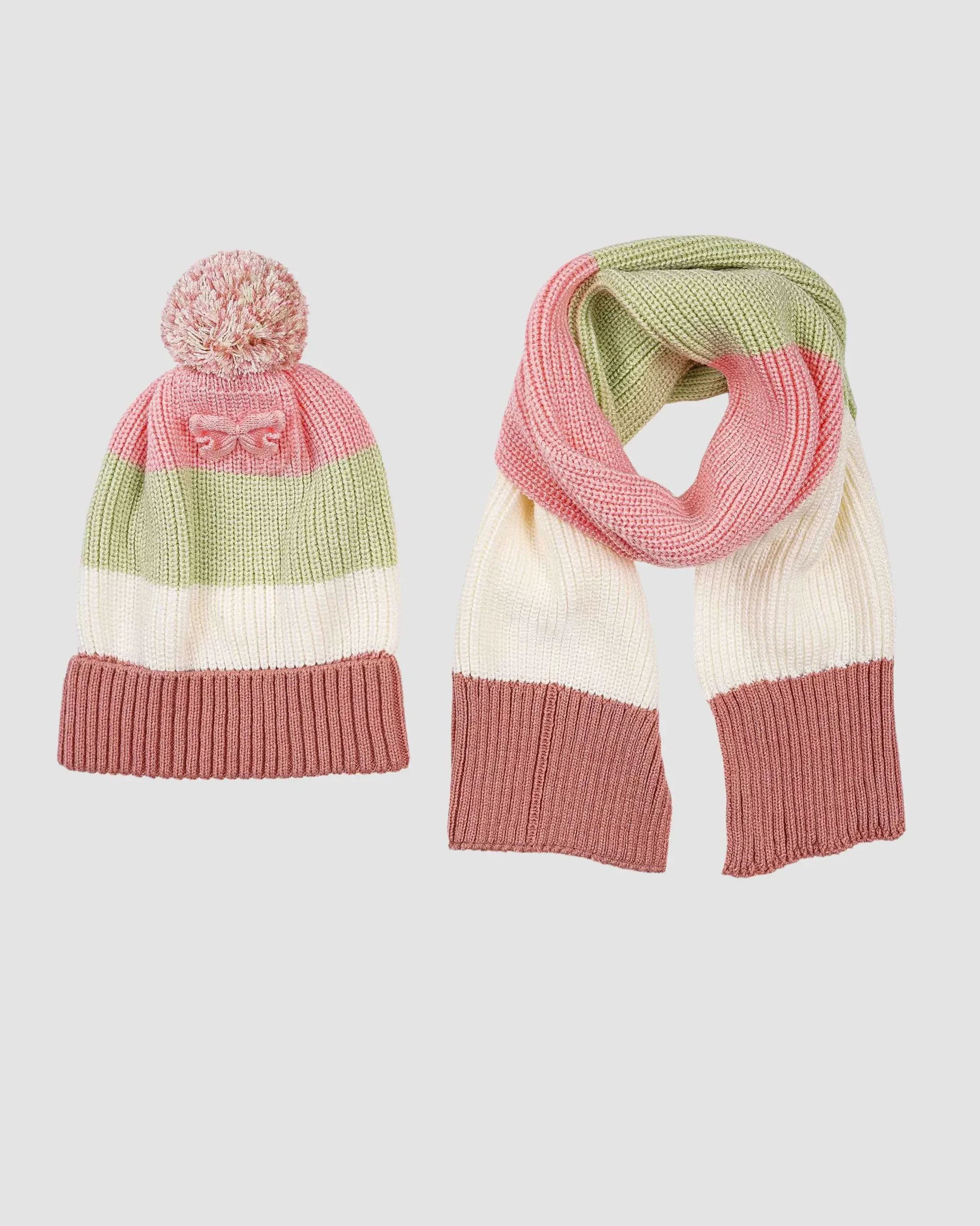 ست شال و کلاه دخترانه طرح پاپیون صورتی-گلبهی
